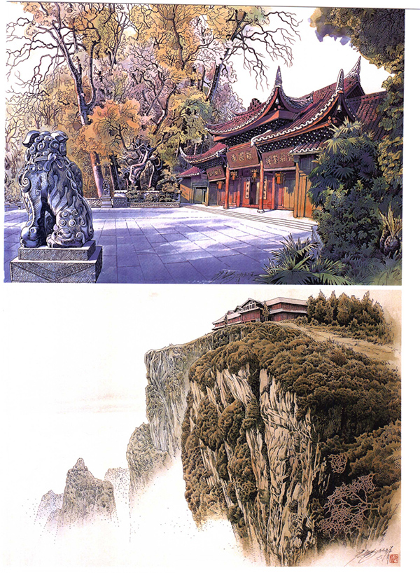 为设计《峨眉风光》邮票,许彦博曾三上峨眉,最终改用钢笔加水彩的表现手法进行设计,使邮票画面呈现出水雾缥缈、清澄幽远的意境。